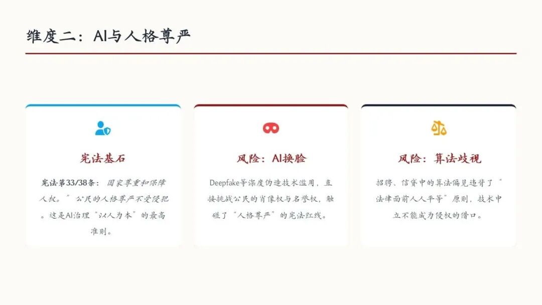 3.做AI伦理的吹哨人:将平等、自由、尊严的宪法精神内化为算法逻辑,防止技术异化。
