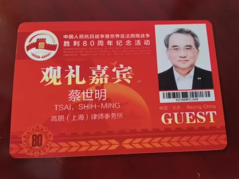 问: 9月3日,纪念中国人民抗日战争暨世界反法西斯战争胜利80周年的盛大阅兵仪式在北京天安门广场隆重举行,您受邀出席了这一具有重大历史意义的观礼活动。据我了解,这是您继2019年受邀出席国庆70周年阅兵观礼后第二次出席国家盛大活动,相信您本人对于能够再次亲临现场,见证这一庄严而