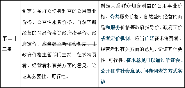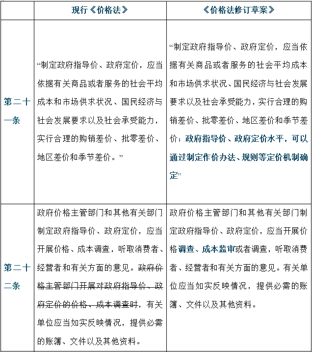 《草案》将第二十二条修改为:“政府价格主管部门和其他有关部门制定政府指导价、政府定价,应当开展价格调查、成本监审或者调查,听取消费者、经营者和有关方面的意见。有关单位应当如实反映情况,提供必需的账簿、文件以及其他资料。
