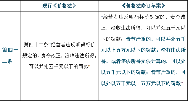 《草案》对价格违法行为的法律责任进一步完善。第四十二条调整了对经营者不正当价格行为的处罚规定,提高了经营者违反明码标价规定的处罚标准,加大了违法成本。同时,明确了经营者拒绝或者虚假提供成本监审、调查等资料的法律责任,增强了监管执法的威慑力,弥补实践中调查取证难、成本数据不配合的追责空白,以期确保价格法能够得以有效实施。