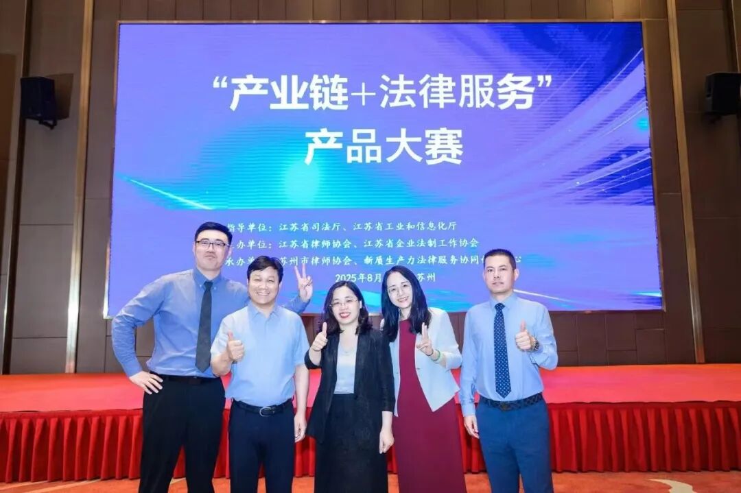 2025年8月30日,由江苏省司法厅、省工信厅等权威部门指导,省律师协会主办的“产业链+法律服务”产品大赛在苏州落下帷幕。本次大赛旨在推动法律服务与前沿产业链的深度融合,是全省律师行业专业创新能力的一次“大阅兵”。