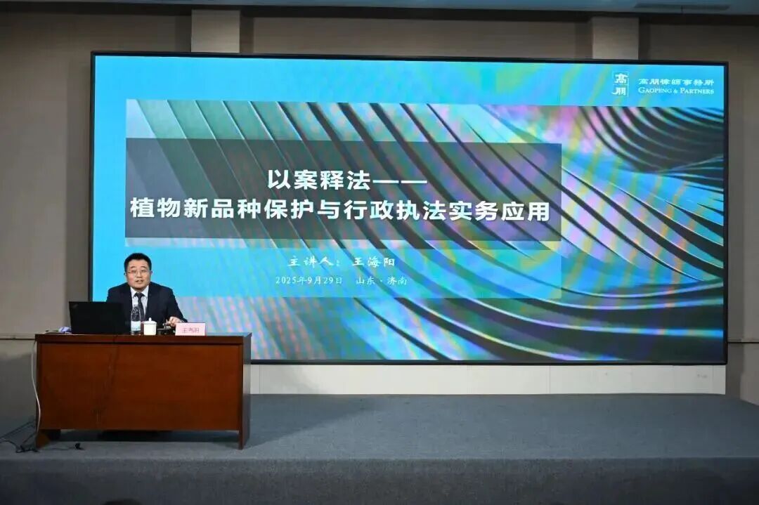 2025年10月29日下午,中国种子协会法律服务团成员、北京市高朋律师事务所高级合伙人、高级知识产权师王海阳律师,应济南市农业农村局的诚挚邀请,为全市农业综合行政执法骨干培训班进行了专题授课。本次授课主题为《以案释法——植物新品种保护与行政执法实务应用》,旨在通过深入剖析实务案例,提升一线执法人员的专业能力,为加强种业知识产权保护、激发农业科技创新活力贡献专业力量。