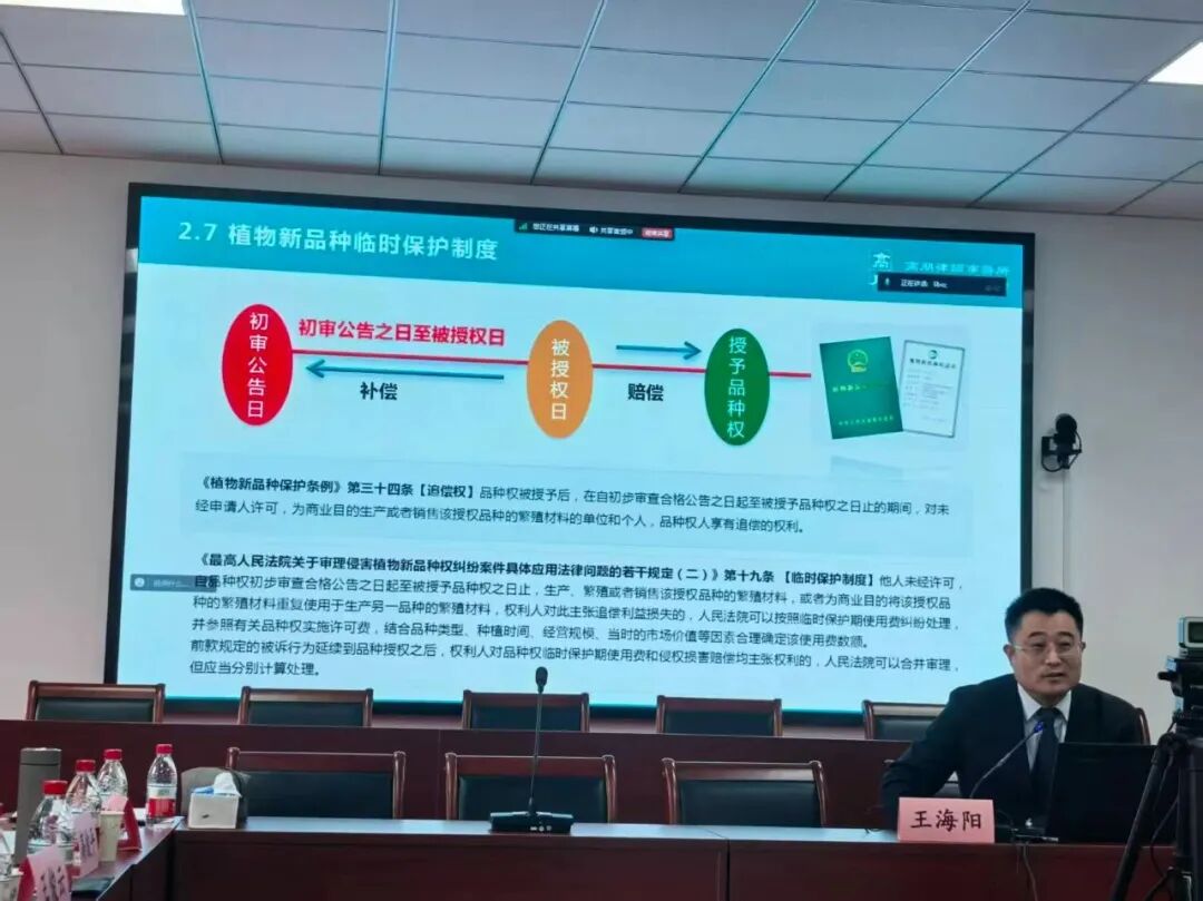 在主题报告中,王海阳律师结合其多年在知识产权与植物新品种保护领域的实务经验,系统分析了EDV相关法律法规的最新动态与要点。他指出,新规不仅明确了EDV的界定标准与保护范围,也为品种权人维护自身权益提供了更清晰的法律依据。