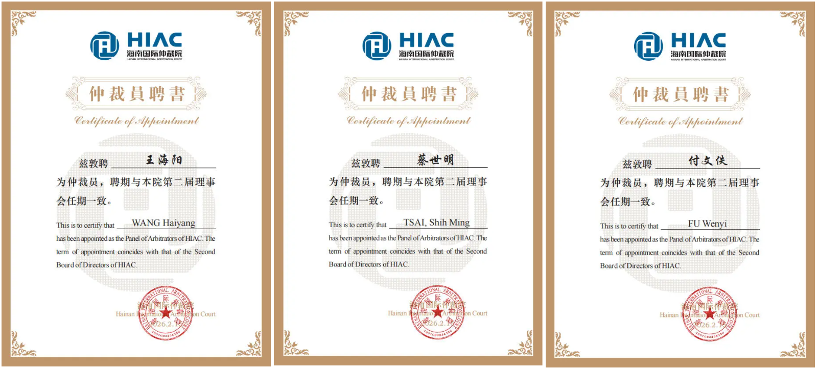 高朋律师事务所多位律师获聘海南国际仲裁院仲裁员
