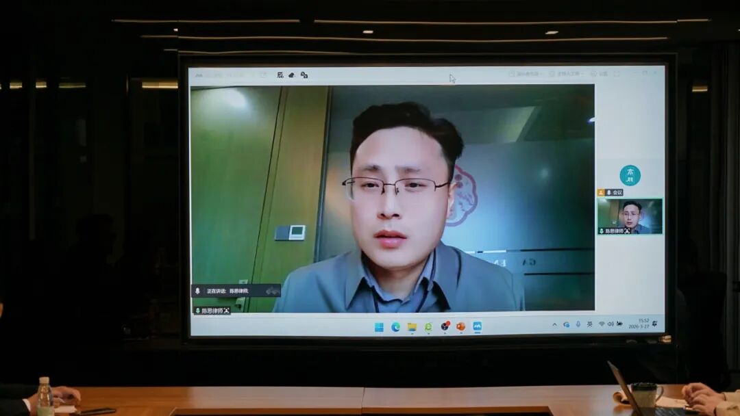 渠帅律师分享后,南京所陈思律师介绍了南京所在2025年底成立的低空经济法律服务部的基本情况,和南京所在对接低空经济相关政府部门、高校、企业资源方面取得的成绩,提出了对开拓低空经济法律服务市场的诸多宝贵建议。